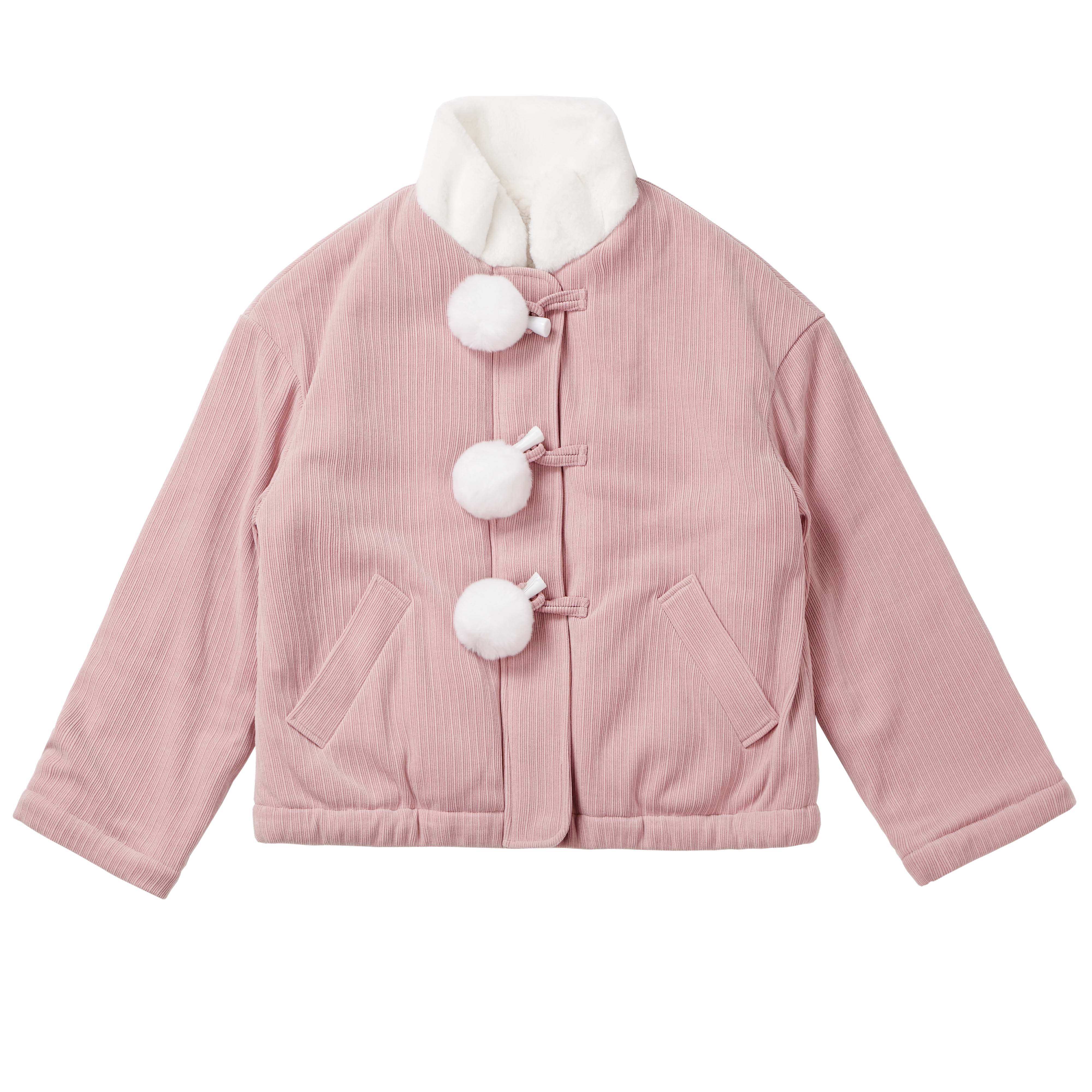 Color classification: wool collar, wool ball, cotton coat, wool edge, shorts, stand collar, with chenille white wool ball trousers, stand collar coat