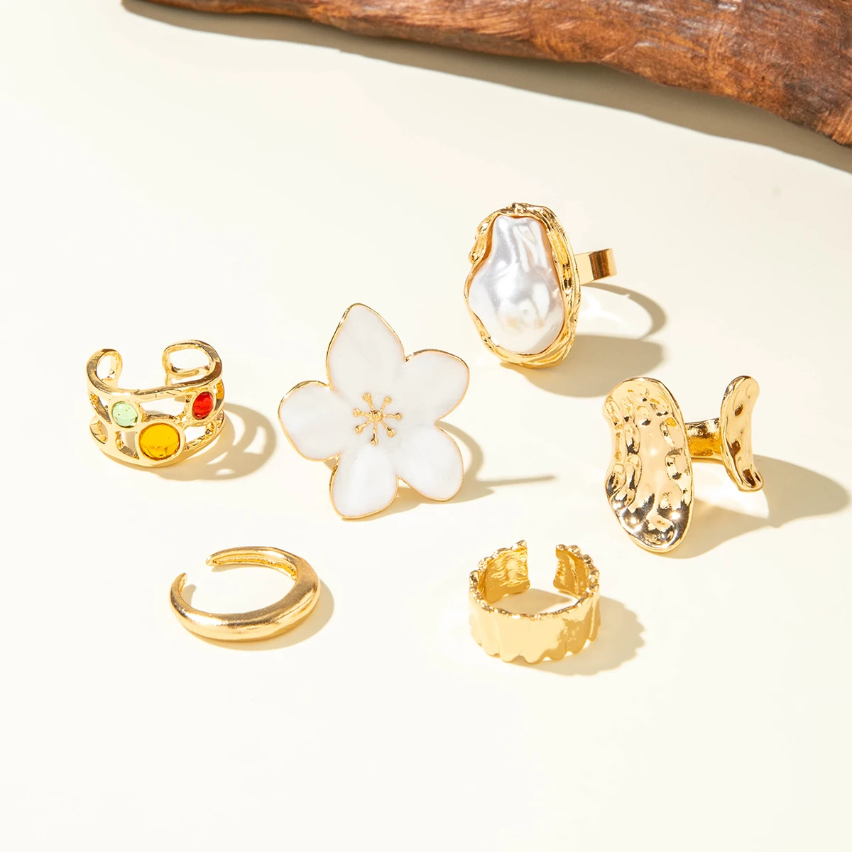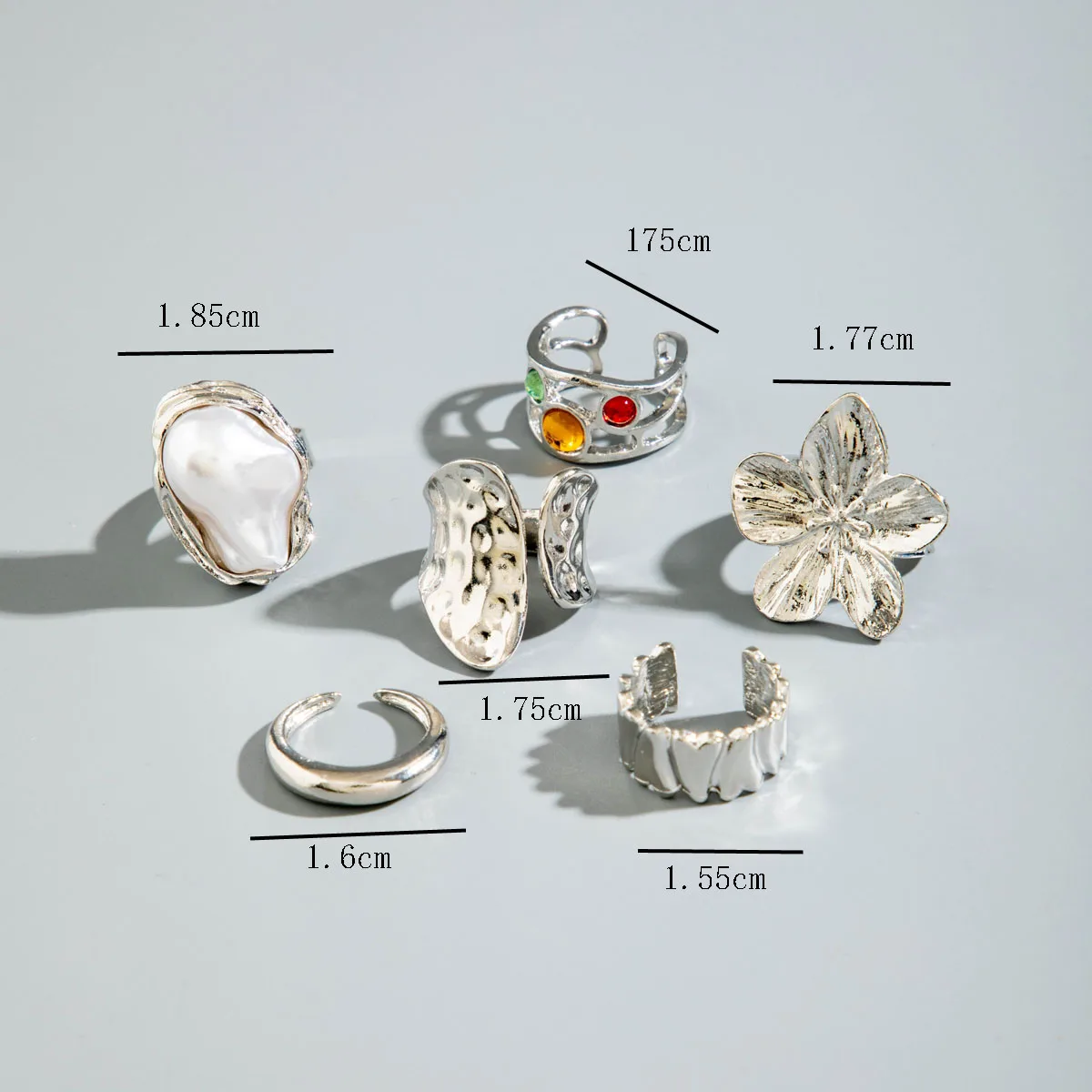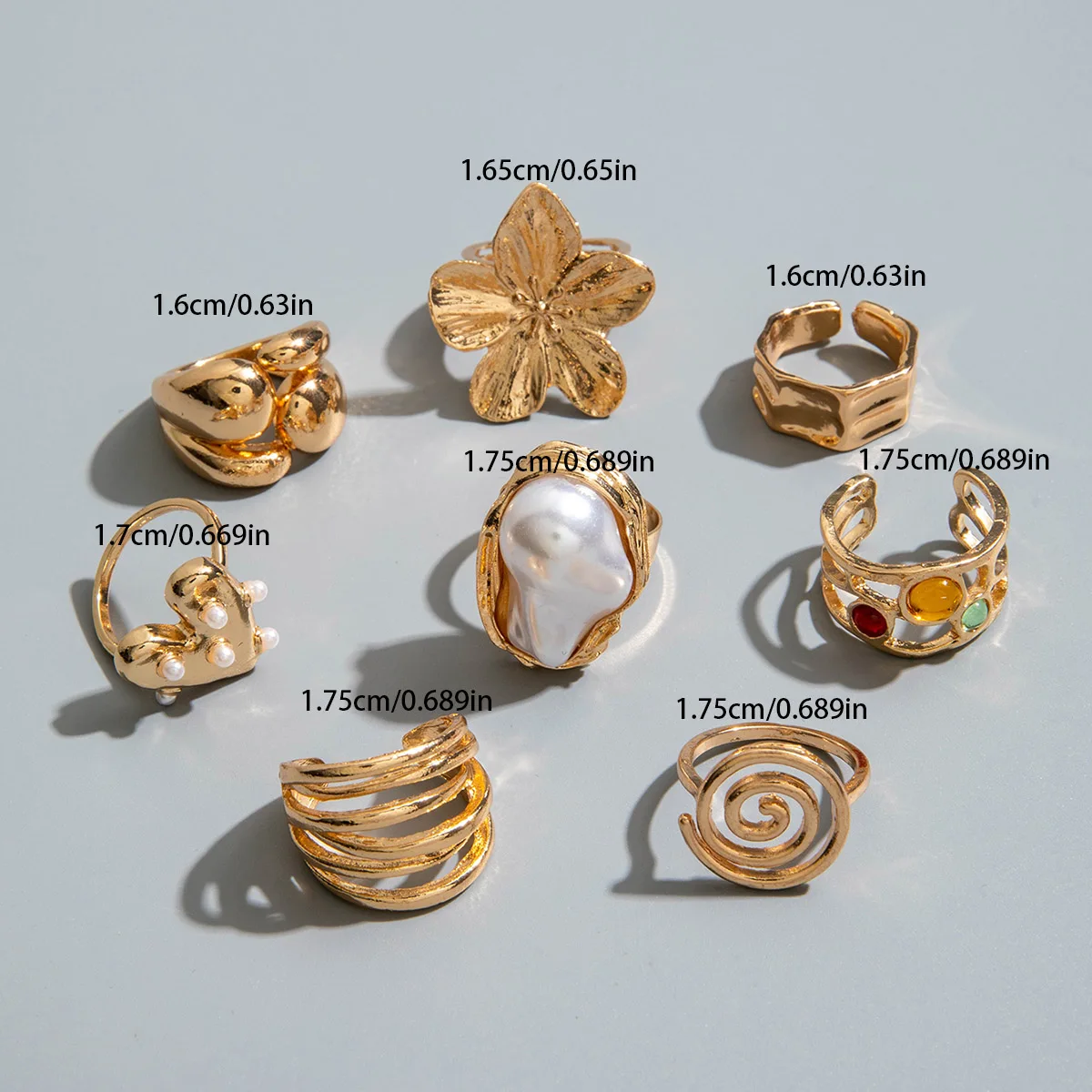 Elegant Design: Each ring in this set features a classic style with a unique irregular shape and a beautiful imitation pearl accent.